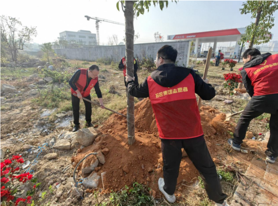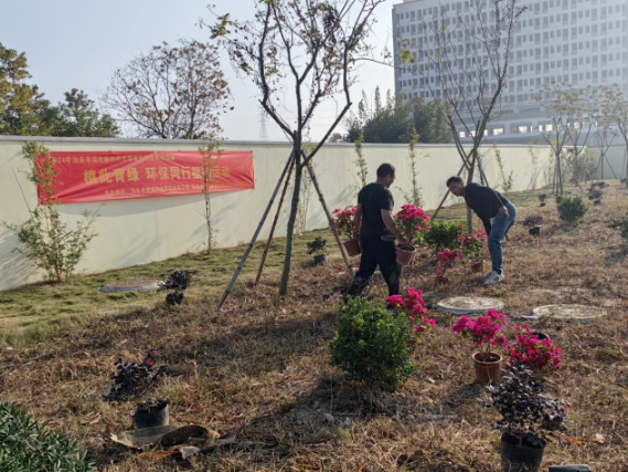 活動現(xiàn)場,大家一起動手,相互協(xié)作配合,扶苗、填土、澆水,有條不紊地將一顆顆樹苗栽種在土地上。盡管汗水淋漓,但每個人的臉上都洋溢著勞動的快樂。在大家的共同努力下,一片生機勃勃的綠意迅速蔓延開來,為周邊的生態(tài)環(huán)境增添了新的活力。