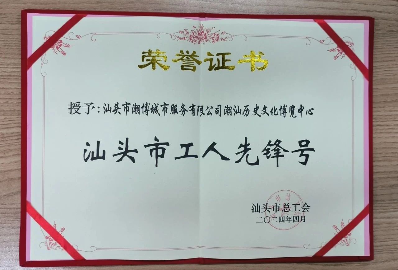 近日,市總工會公布了2024年汕頭市五一勞動獎?wù)潞蜕穷^市工人先鋒號獲獎名單,汕投控集團(tuán)下屬企業(yè)汕頭市潮博城市服務(wù)有限公司管理運(yùn)營的潮汕歷史文化博覽中心(下稱潮博中心)喜獲“汕頭市工人先鋒號”榮譽(yù)稱號。自試運(yùn)營以來,潮博中心已相繼榮獲“中國華僑國際文化交流基地”“廣東省社會科學(xué)普及基地”“汕頭市社會科學(xué)普及基地”“廣東省兒童友好基地”等榮譽(yù)稱號,成為我市展示潮汕非物質(zhì)文化遺產(chǎn)的重要窗口和交流平臺。