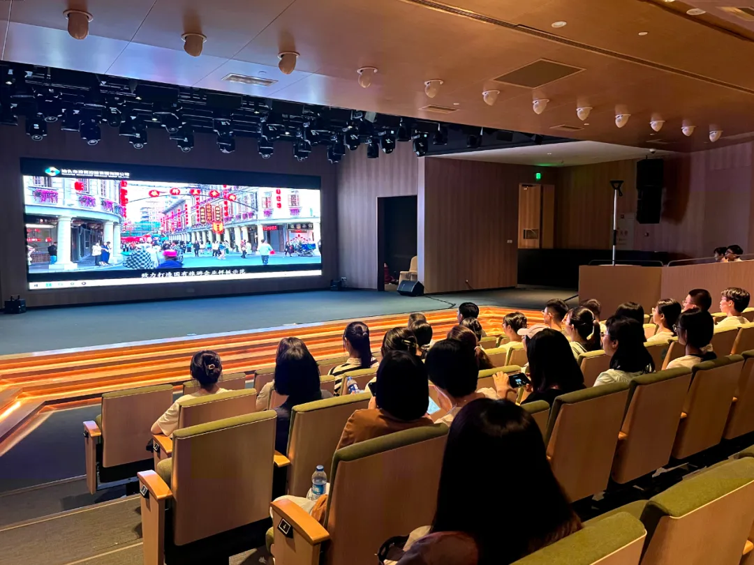 隨后,參觀隊(duì)伍前往潮汕歷史文化博覽中心。潮汕歷史文化博覽中心作為潮汕歷史文化和華僑文化的重要展示交流綜合體、潮汕文化對(duì)外交流重要窗口,是潮人之都的文化重器,是匯聚潮汕文化精髓、展現(xiàn)汕頭邁進(jìn)新時(shí)代的城市新地標(biāo)”。在講解員的帶領(lǐng)下,大家通過豐富的展覽內(nèi)容與前沿的展示技術(shù),感受到潮汕文化的深厚底蘊(yùn)與獨(dú)特風(fēng)采。在多功能廳內(nèi),大家觀看了《汕投控集團(tuán)宣傳片》《汕頭高鐵站樞紐一體化工程?hào)|廣場(chǎng)工程項(xiàng)目進(jìn)展》及《潮起逐浪揚(yáng)帆起航——汕頭國(guó)際會(huì)展中心誕生記》等宣傳片,了解了集團(tuán)公司在城市基礎(chǔ)設(shè)施建設(shè)、會(huì)展經(jīng)濟(jì)等方面的貢獻(xiàn)與未來規(guī)劃,進(jìn)一步增強(qiáng)了作為集團(tuán)公司一員的歸屬感和自豪感。
