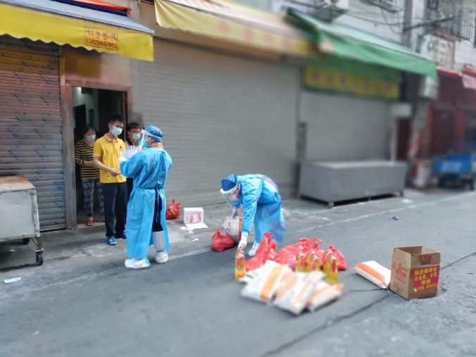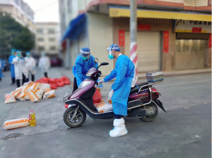 據(jù)悉,抗疫支援隊伍在臨時黨支部的領(lǐng)導(dǎo)下開展工作,分核酸組、哨崗組和巡邏組三路人馬,24小時輪班上陣。臨時黨支部每天都會及時匯總工作難點,科學(xué)制定應(yīng)對策略,動態(tài)調(diào)整工作任務(wù),幫助志愿隊伍有效克服各種困難,完成社區(qū)疫情防控各項工作。盡管當(dāng)?shù)匾咔榉揽匦蝿輫谰?fù)雜、任務(wù)繁忙,但志愿者們不畏艱辛,迎難而上。所有人每天都穿著防護服,協(xié)助開展疫情防控服務(wù)工作,在社區(qū)范圍配合做好防疫宣傳、秩序維護、信息登記、核酸采集掃描,以及幫助社區(qū)工作人員分發(fā)物資和趕赴疫情管控區(qū)工廠、民宅、快遞站等地方配送糧食物資。